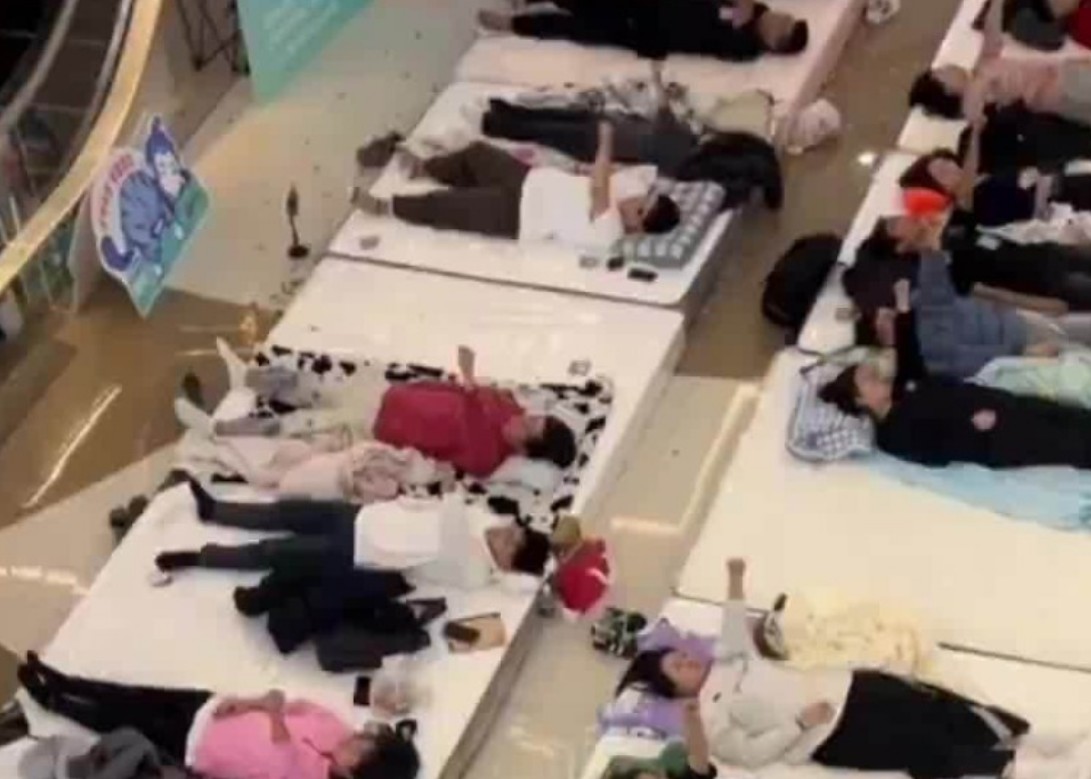 11月15日,240人在中国内蒙古自治区包头市的一家购物中心聚集,参加一场受“躺平”运动启发的特殊比赛。“躺平”是中国大陆网络上流行的一种说法,指的是放弃追求社会期望的激烈竞争,转而选择放松生活、维持最低生活标准...